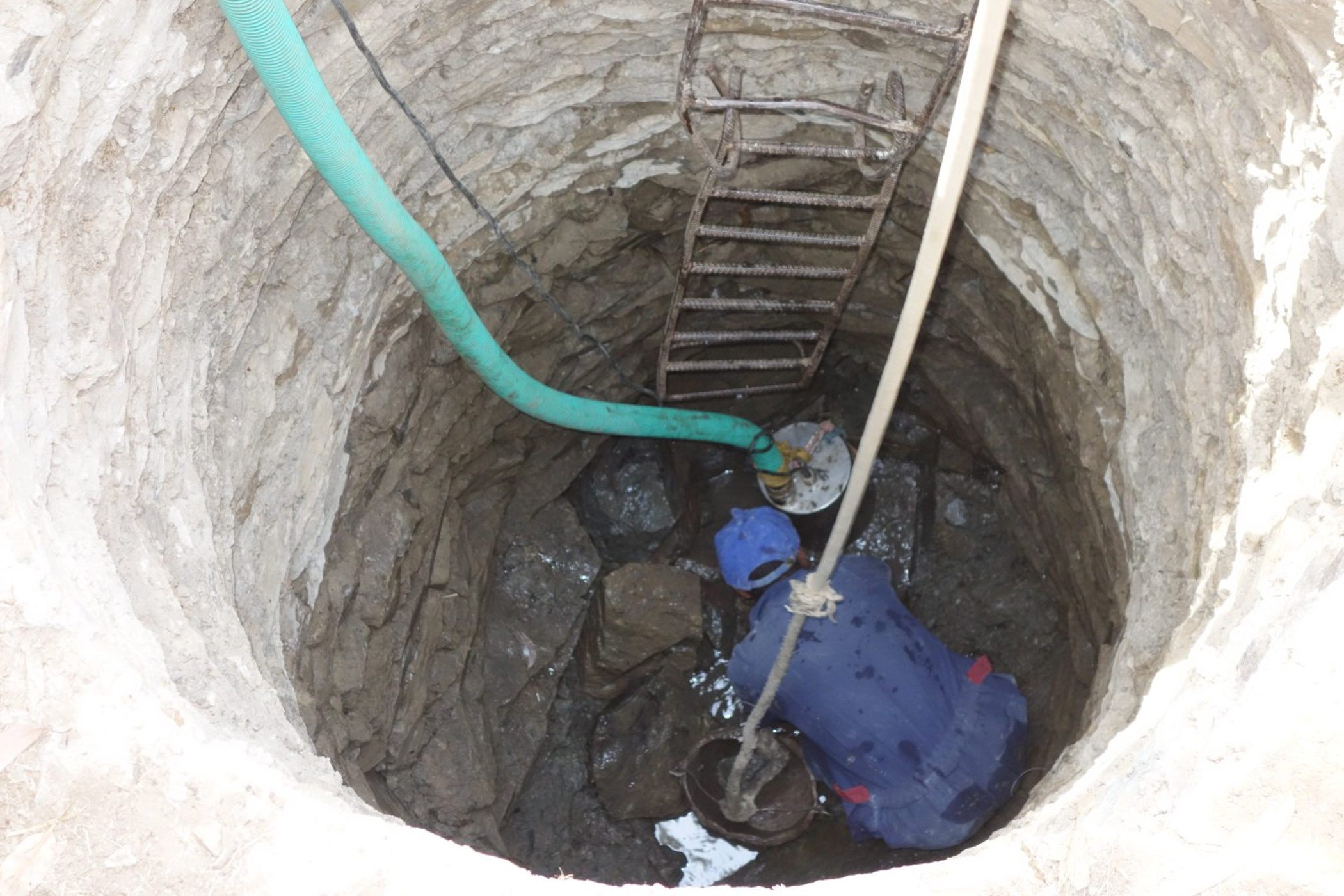 Construction of a hand dug well typically involves breaking up 4 metre depth of rock after hand digging through 15 metres of topsoil.